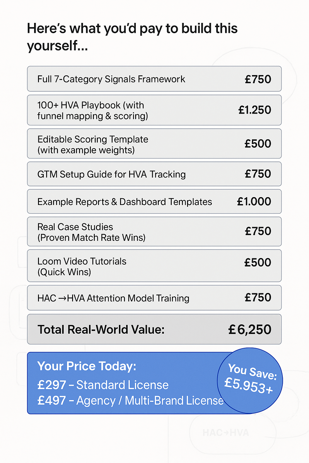 ✔ 100+ HVA Playbook – Each mapped to funnel stage, scoring, and activation tips.